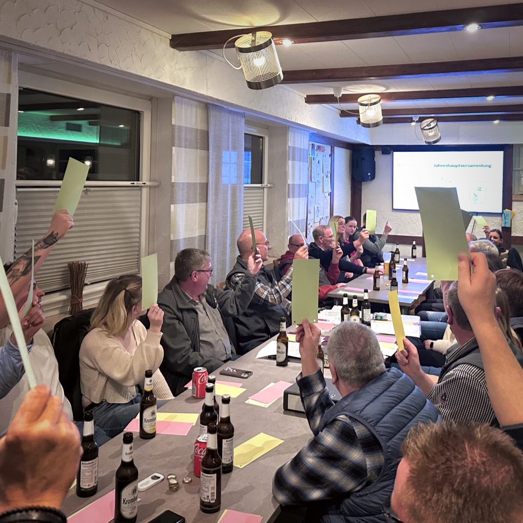Nach den Laudationen gab es jeweils anhaltenden Applaus. Alle bleiben dem Verein aktiv erhalten. Auf ihre Erfahrung, ihre Tatkraft und ihr Wissen kann der neue Vorstand dankend zurückgreifen. Mit Blick auf die ausscheidenden Vorstandsmitglieder wurde über die Absicht abgestimmt Ehrenvorsitzende und Ehrenmitglieder ernennen zu können – ein würdiger Schritt, der uneingeschränkte Zustimmung der 31 Anwesenden fand.